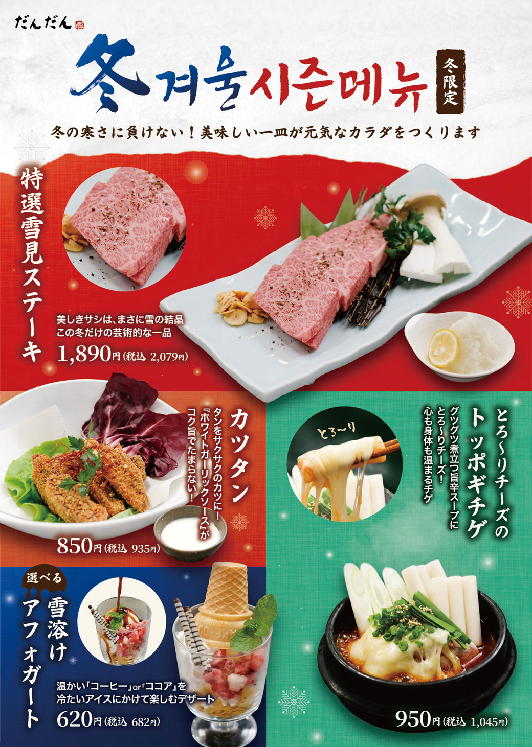 冬の寒さに負けない!美味しい一皿が元気なカラダをつくります! この冬だけの限定メニューをぜひ楽しんでください。