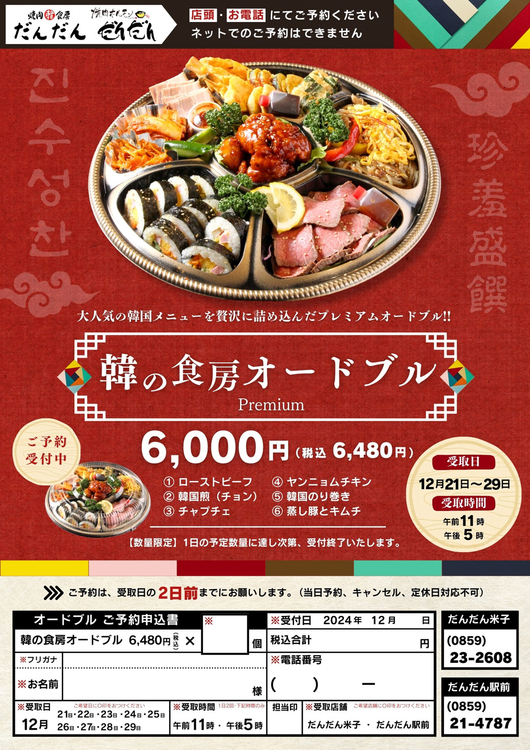 だんだんの2024韓国料理オードブル、ご予約受付中です!