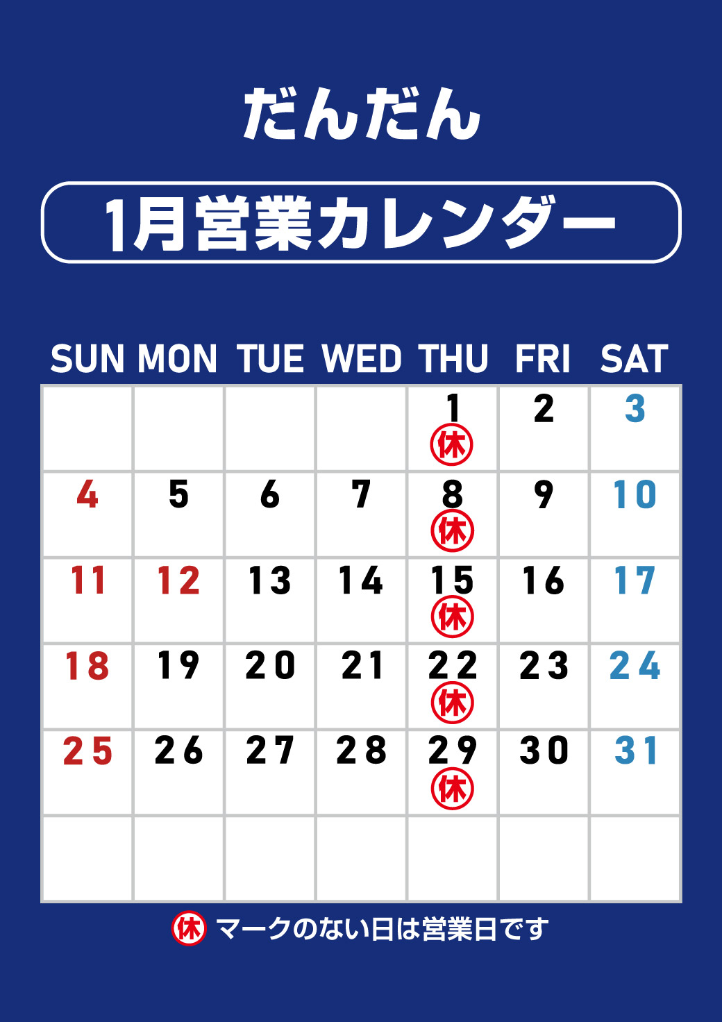 1月営業日カレンダー