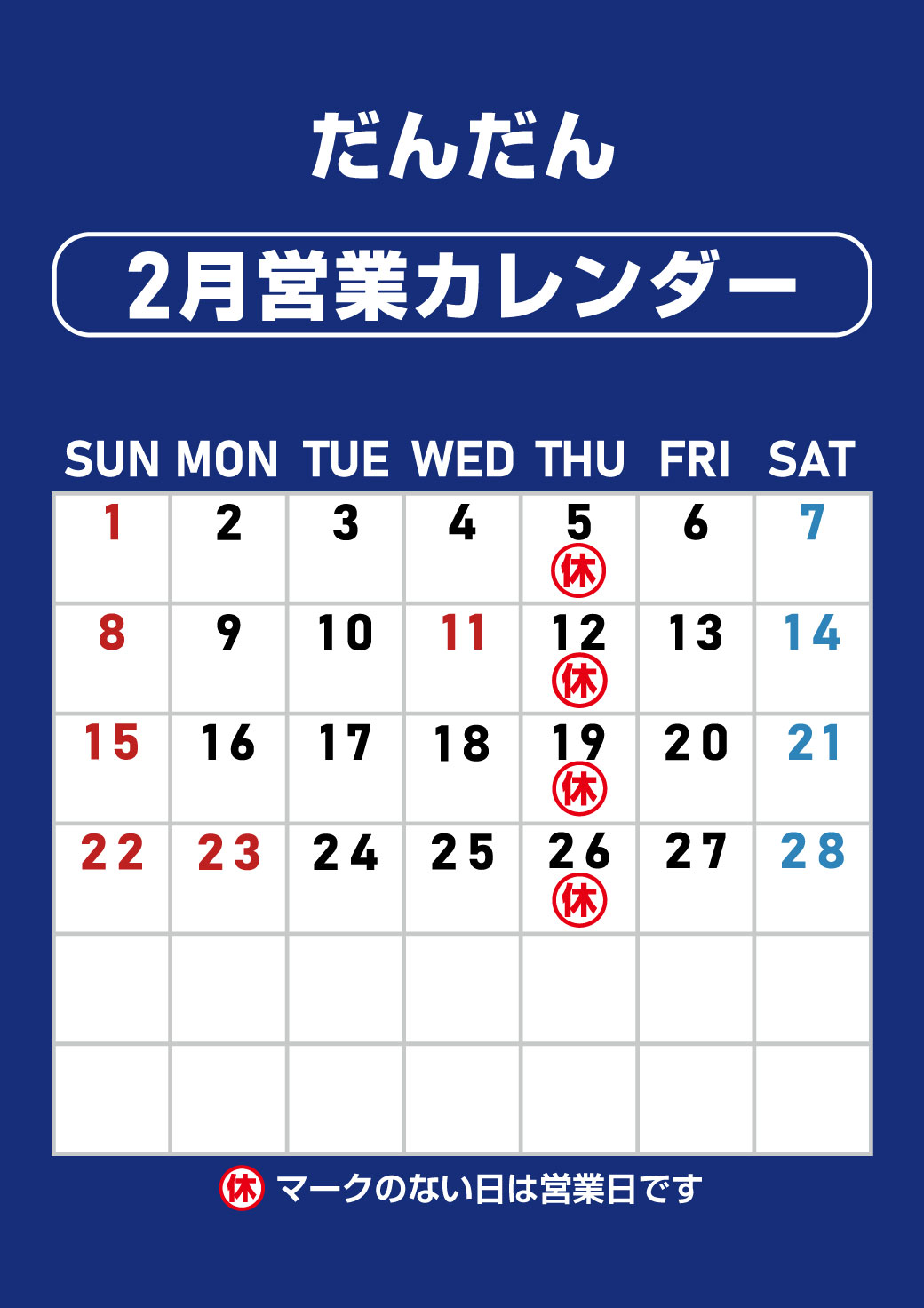 2月営業日カレンダー